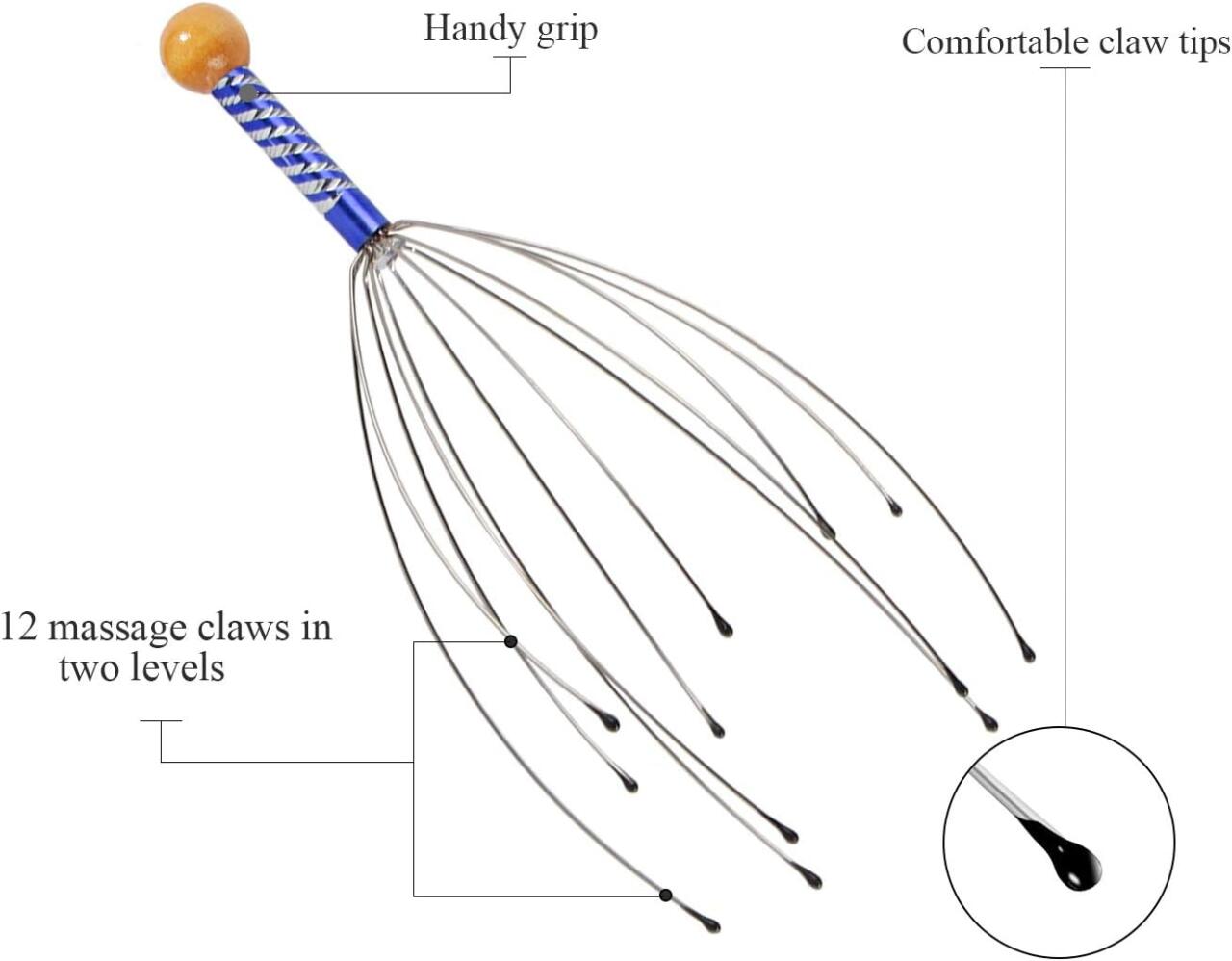 Su diseño ergonómico estimula puntos clave del cuero cabelludo, aliviando la tensión muscular, mejorando la circulación y reduciendo el estrés mental.