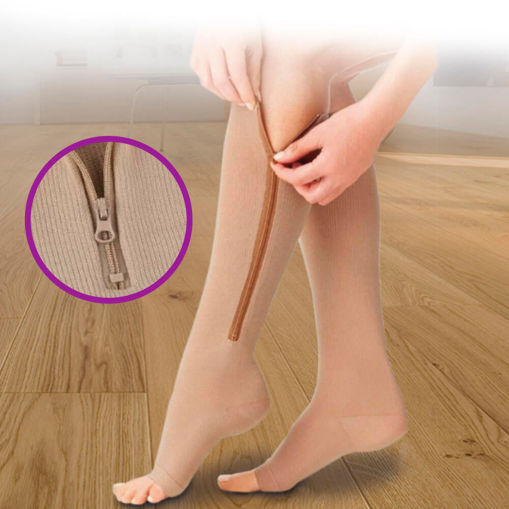 Recibe 3 medias ZipFit en tallas adaptadas a ti, listas para cuidar tus piernas cada día con estilo y confort.